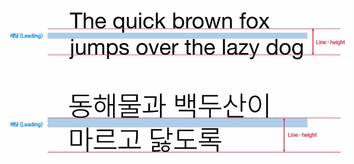 행간/레딩(Line spacing/Leading): 한 글줄에서 다음 글줄까지의 거리.