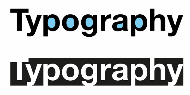 네거티브 스페이스: 포지티브 스페이스를 제외한 나머지 공간 글자 내부의 빈 공간, 글자 사이의 빈 공간을 포함한다.