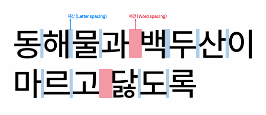 어간(Word spacing): 단어와 단어 사이의 간격