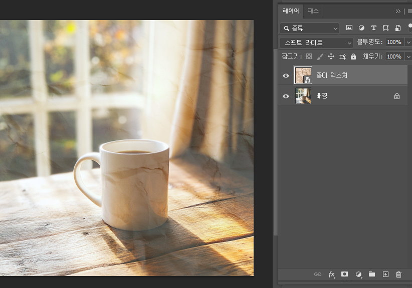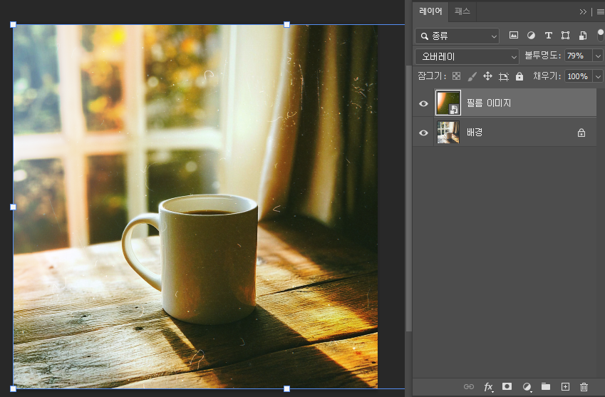 스마트 오브젝트로 변환한 레이어에 카메라 로우 필터를 적용하면 언제든 값 조정이 가능하다.(비파괴 편집)