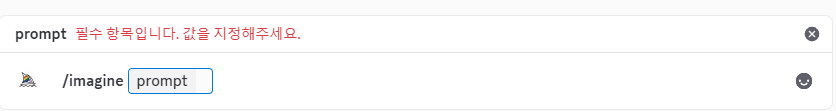미드저니 프롬프트 입력(디스코드). 반드시 파란 박스 안에 입력되어야 한다.