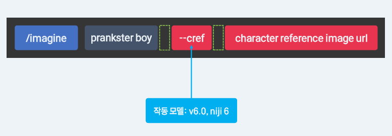 --cref(캐릭터 레퍼런스): 미드저니에서 특정 인물의 외형을 일관되게 유지하고, 다양한 포즈나 배경, 상황을 그릴 때 사용하는 기능