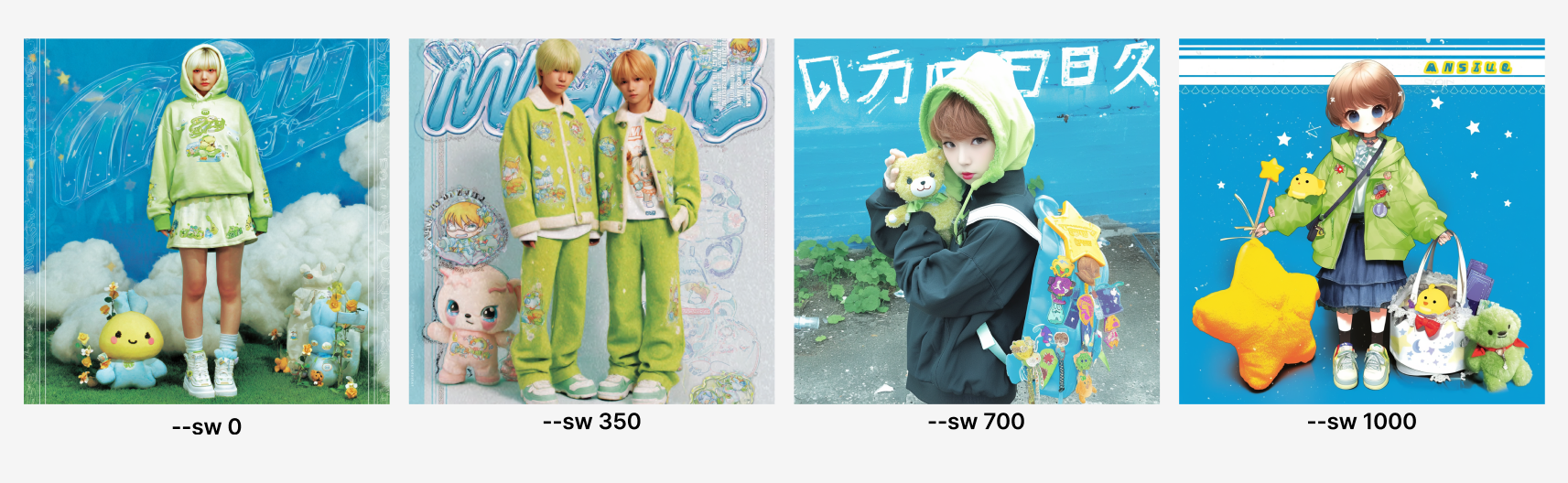 --sref 활용방법: 브랜드의 룩북이나 스타일 등을 참고 이미지로 삼으면 시리즈 이미지 제작에 유용하다.