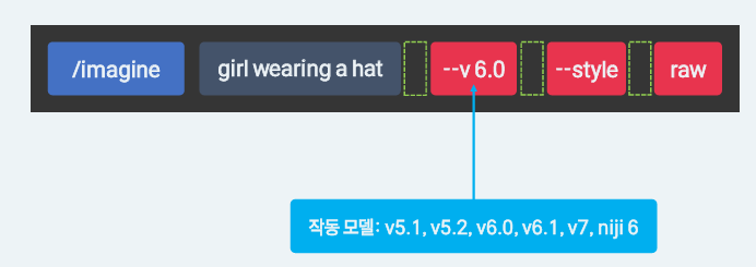 -- style raw: 미드저니의 기본 미학 스타일링을 최소화하거나 제거하는 파라미터로, 프롬프트를 더 직접적으로 반영한다.