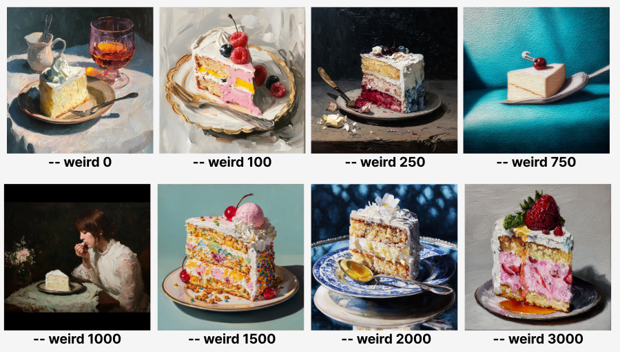 -- chaos / -- weird: 이미지의 예측 불가능성을 조절하는 파라미터