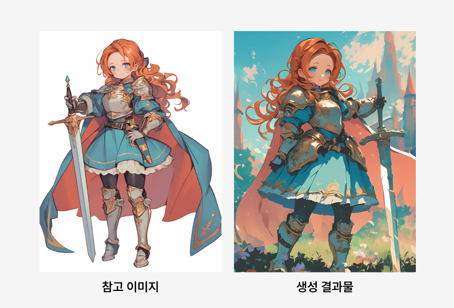 참고용 이미지와 참고이미지를 바탕으로 만든 생성 결과물