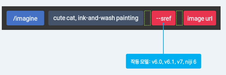 -- sref(style reference): 미드저니에서 특정 이미지의 스타일을 참고하여 새로운 이미지를 생성할 수 있는 파라미터