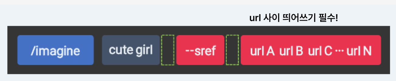 -- sref(style reference): 미드저니에서 특정 이미지의 스타일을 참고하여 새로운 이미지를 생성할 수 있는 파라미터