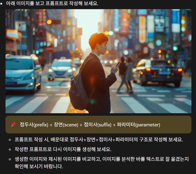 - 프롬프트 수정 및 재작성을 통해 프롬프트 구성 능력을 늘릴 수 있다.