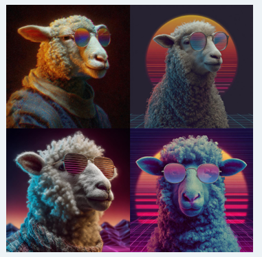 - synthwave(retrowave): 80년대 감성 네온사인, 야자수, 원, 수평선 등이 포함된 복고 스타일 이미지 생성