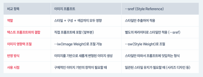 이미지 프롬프트와 --sref(style reference)와의 차이점 이