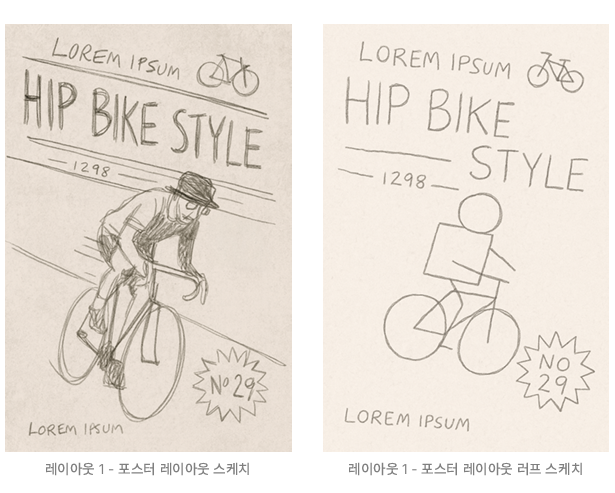 레이아웃을 고른 후 손으로 간단하게 레이아웃 스케치를 그린다.
