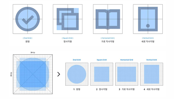 (그리드의 간격이 촘촘할수록 아이콘이 더 섬세해질 수 있다.)