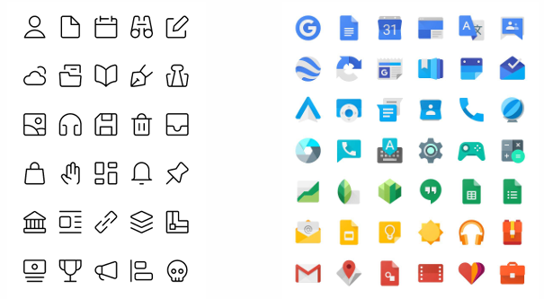 - 브랜드 아이덴티티: 브랜드 철학과 톤 앤 매너를 반영하는 도구 (예: google material icons)
