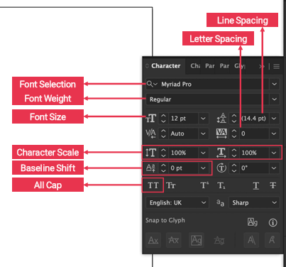 Baseline Shift: 영문과 한글을 함께 쓸 때 베이스라인을 맞춰서 텍스트의 위치를 미세하게 조정하는데 쓴다.
