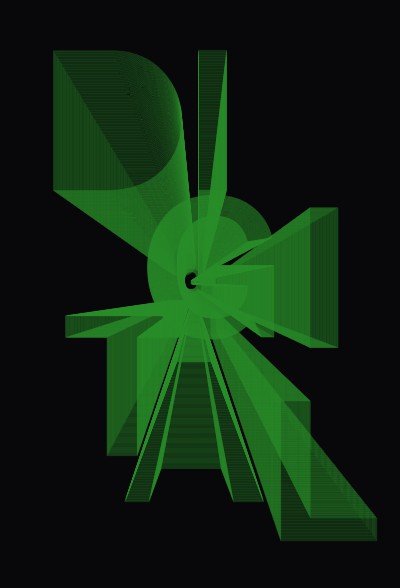 (1: Transform 사용), (2: blend option 중 specified steps를 275로 설정하여 제작), (3: Extru&Bevel 효과 사용)